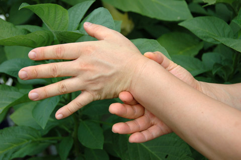 触れ合っている箇所がリアルに感じられるようになれば、今まで何となく手首(ここでは尺骨側か橈骨側のどちらか一方)があると「思っていた」場所と、実際の手首との間に、ギャップが存在している事実に気づくことだろう。