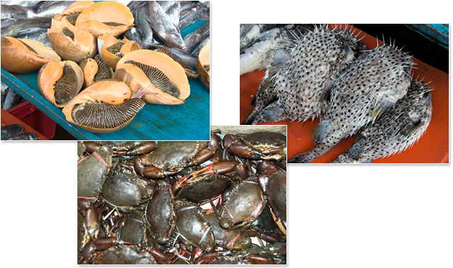 伊勢エビ並のばかでかいマンティス・プローン(蝦蛄[シャコ]:たっぷりの刻んだガーリック及び香草と一緒に揚げると美味)や、マングローヴの素敵な泥の香りがする小さな赤貝みたいなハイガイ(ボイルして特製チリソースにディップしながらいただくと珍味)、多種多様の魚、貝、エビ・カニ(カニ・エビの味・食感は、種類によりすべて異なる)などなどなどを、この街では、財布の中身をあまり気にすることなく、心ゆくまで楽しむことができる。