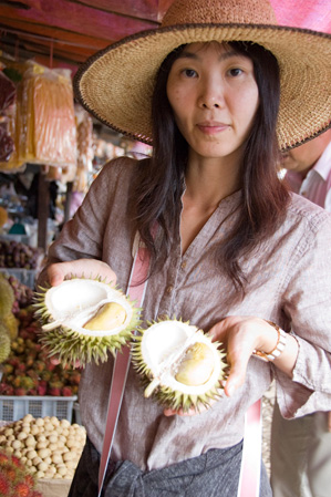 ボルネオでは、硬く鋭い長大なトゲで鎧われた野生のドリアン(オランウータンの好物だそうな)や、鮮やかなピンクの実を持つドリアン(これは実は料理用で、生で食べても味も香りもほとんどない)、濃いオレンジ色の変わった食感のドリアンなど、私も初めて味わういろんな種類のドリアンと出会った。